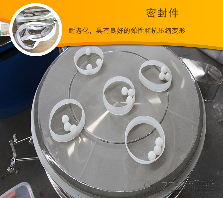 密封件是超聲波振動篩、旋振篩等產品中不可缺少的配件,沒有它篩分物料時粉塵會飛出來,漿液物料也會飛濺。密封件可塑性極強,耐老化,具有良好的彈性和抗壓縮變形。有密封,緩沖、防震,防滑,防塵等作用。主要用在振動篩網架的包裹,振動篩篩框之間、框體與防塵蓋之間的連接。