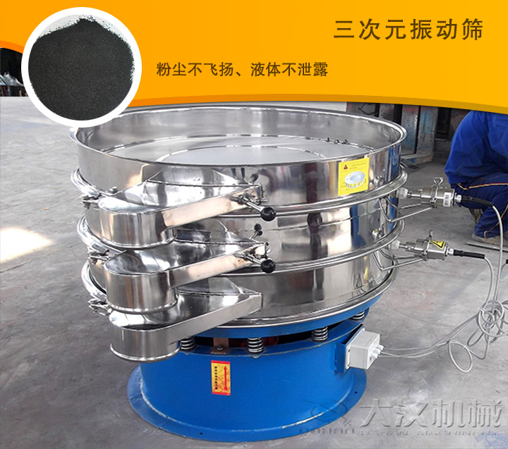 高頻振動篩、滾筒篩、超聲波振動篩、氣流篩、三次元振動篩都可以篩分橡膠粉,大漢機械建議您使用三次元振動篩篩分橡膠粉效果會比較好